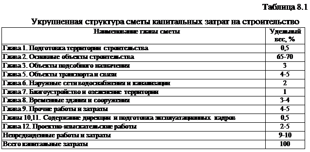 — капитальные затраты по двенадцати (для ГЭС по тринадцати) главам сметы.