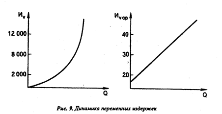 В силу того, что постоянные издержки неизменны на протяжении производственного цикла, общие издержки в своем развитии следуют за изменениями переменных издержек.