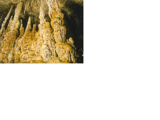 | Рис. 9. Натечные образования кальцита – сталактиты, сталагмиты |