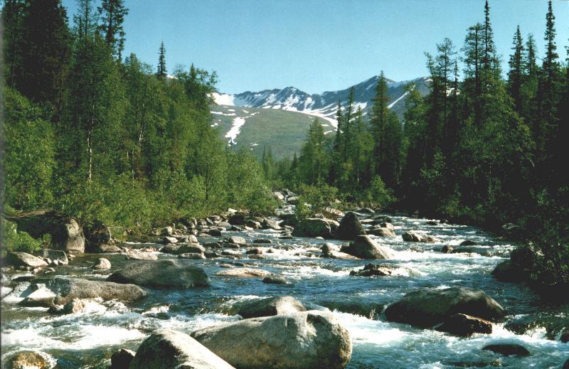 Аллювиальные отложения пойм горных рек существенно отличаются от равнинных. Вследствие значительных скоростей движения горных рек песчаные и глинистые частицы почти не оседают на дно, а переносятся к устьевым частям. Непосредственно же в долине реки откладывается более грубый материал – гравий, галечники с отдельными валунами (рис. 40). Эта русловая фация почти целиком слагает пойму горной долины. Пойменная же фация слабо выражена и развита не повсеместно, главным образом она встречается на расширенных участках долины, где представлена грубыми песками и супесями и часто находится в смеси с пролювиальными отложениями конусов выноса и коллювиальными образованиями.