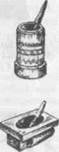| Хозяйственный инвентарь для переработки продуктов древнего татарского крестьянина (ступы, ручная мельница, пахтальница, ступа с подвешенным на жерди тяжелым билом) |