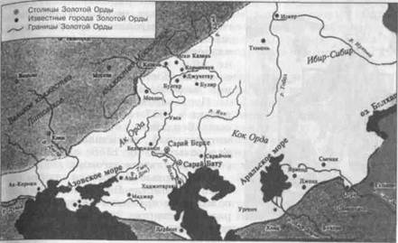 Золотой Ордой правили потомки четырех сыновей Джучи. О линии потомства Бату уже писали. Одновременно с этой линией в других частях Джучиева улуса правили потомки других сыновей Джучи — Шайбана в Западной Сибири и Орды-Ичена — в Синей Орде (земли к востоку от Волги). Из последней вышли многие ханы Золотой Орды последнего периода ее существования (конец XIV — середина XV века). В западных областях Белой Орды, включая Крым, находился юрт младшего сына Джучи, Тукай-Тимура. Из этой линии вышли известные золотоордынс-кие ханы Тохтамыш, Улу-Мухаммед.