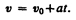 Если начальный момент времени t 1=0, а начальная скорость v 1 =v 0, то, обозначив t 2 =t и v 2 =v, получим