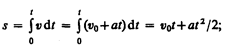 Проинтегрировав эту формулу в пределах от нуля до произвольного момента времени t, найдем, что длина пути, пройденного точкой, в случае равнопеременного движения