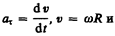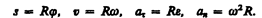 Таким образом, связь между линейными (длина пути s, пройденного точкой по дуге окружности радиуса R, линейная скорость v, тангенциальное ускорение