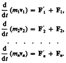 — равнодействующие внешних сил. Запишем второй закон Ньютона для каждого из n тел механической системы: