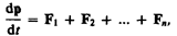 — импульс системы. Таким образом, производная по времени от импульса механической системы равна геометрической сумме внешних сил, действующих на систему.