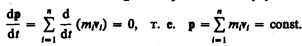 Последнее выражение и является законом сохранения импульса: импульс замкнутой системы сохраняется, т. е. не изменяется с течением времени.