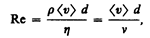 где n = h/p— кинематическая вязкость; р— плотность жидкости; < v >—средняя по сечению трубы скорость жидкости; d — характерный линейный размер, например диаметр трубы.