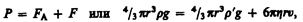 На шарик, падающий в жидкости вертикально вниз, действуют три силы: сила тяжести Р= 4/3 pr 3 rg (r — плотность шарика), сила Архимеда Р= 4/3 pr 3 r'g (r' — плотность жидкости) и сила сопротивления, эмпирически установленная Дж. Стоксом: F= 6 phrv, где r — радиус шарика, v — его скорость. При равномерном движении шарика