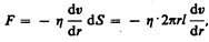 где d S — боковая поверхность цилиндрического слоя; знак минус означает, что при возрастании радиуса скорость уменьшается.