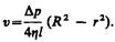 После интегрирования, полагая, что у стенок имеет место прилипание жидкости, т. е. скорость на расстоянии R от оси равна нулю, получаем