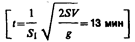 6.2. Бак цилиндрической формы площадью основания S = 1 м2 и объемом V = 3 м3 заполнен водой. Пренебрегая вязкостью воды, определить время t, необходимое для опустошения бака, если на дне бака образовалось круглое отверстие площадью S 1 =10 см2.
