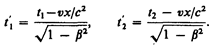 1. Одновременность событий в разных системах отсчета. Пусть в системе К в точках с координатами x 1 и x 2 в моменты времени t 1 и t 2 происходят два события. В системе К' им соответствуют координаты