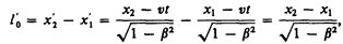— не изменяющиеся со временем t' координаты начала и конца стержня, а индекс 0 показывает, что в системе отсчета К' стержень покоится. Определим длину этого стержня в системе К, относительно которой он движется со скоростью v. Для этого необходимо измерить координаты его концов x 1 и x 2 в системе К в один и тот же момент времени t. Их разность l = х 2 – х 1 и определяет длину стержня в системе К. Используя преобразования Лоренца (36.3), получим