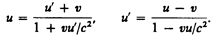 (аналогично можно показать, что при и = с скорость u' также равна с). Этот результат свидетельствует о том, что релятивистский закон сложения скоростей находится в согласии с постулатами Эйнштейна.