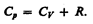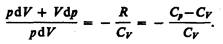 Выражение (53.6) называется уравнением Майера; оно показывает, что Ср всегда больше СV на величину молярной газовой постоянной. Это объясняется тем, что при нагревании газа при постоянном давлении требуется еще дополнительное количество теплоты на совершение работы расширения газа, таккак постоянство давления обеспечивается увеличением объема газа. Использовав (53.5), выражение (53.6) можно записать в виде