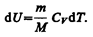 т. е. молярная теплоемкость газа при постоянном объеме СV равна изменению внутренней энергии 1 моль газа при повышении его температуры на 1 К. Согласно формуле (50.1),
