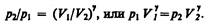 Интегрируя это уравнение в пределах от p 1 до p 2 и соответственно от V 1 до V 2, а затем потенцируя, придем к выражению