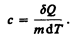 Удельная теплоемкость вещества — величина, равная количеству теплоты, необходимому для нагревания 1 кг вещества на 1 К: