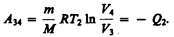 Количество теплоты Q 2, отданное газом холодильнику при изотермическом сжатии, равно работе сжатия А 34: