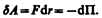 Элементарная работа dA силы F при увеличении расстояния между молекулами на d r совершается за счет уменьшения взаимной потенциальной энергии молекул, т. е.