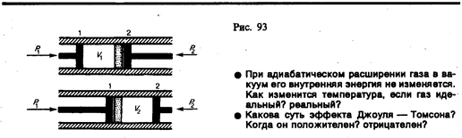 Так как V 2 > V 1, то Т 1 > Т 2, т. е. реальный газ при адиабатическом расширении в вакуум охлаждается. При адиабатическом сжатии в вакуум реальный газ нагревается.