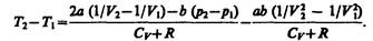 Ради простоты рассмотрим 1 моль газа. Подставляя в формулу (64.2) выражение (63.3) и рассчитанные из уравнения Ван-дер-Ваальса (61.2) значения p 1 V 2и р 2 V 2 (символ «m» опять опускаем) и производя элементарные преобразования, получаем