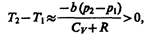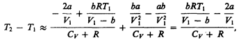 Из выражения (64.3) следует, что знак разности (T 2— T 1) зависит от того, какая из поправок Ван-дер-Ваальса играет бóльшую роль. Проанализируем данное выражение, сделав допущение, что p 2 <<p 1 и V 2 >>V 1: