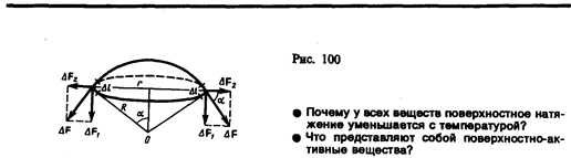 Поверхностное натяжение существенным образом зависит от примесей, имеющихся в жидкостях. Вещества, ослабляющие поверхностное натяжение жидкости, называются пoвеpxностно-активными. Наиболее известным поверхностно-активным веществом по отношению х воде является мыло. Оно сильно уменьшает ее поверхностное натяжение (примерно с 7,5 •10–2 до 4,5 • 10–2 Н/м). Поверхностно-активными веществами, понижающими поверхностное натяжение воды, являются также спирты, эфиры, нефть и др.