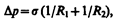 Для сферической искривленной поверхности (R 1 =R 2 =R) выражение (68.3) переходит в (68.1), для цилиндрической (R 1 =R и R 2 = ¥) — избыточное давление
