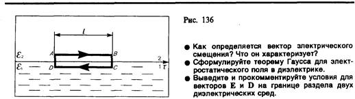 Рассмотрим, с чем можно связать вектор электрического смещения. Связанные заряды появляются в диэлектрике при наличии внешнего электростатического поля, создаваемого системой свободных электрических зарядов, т. е. в диэлектрике на электростатическое поле свободных зарядов накладывается дополнительное поле связанных зарядов. Результирующее поле в диэлектрике описывается вектором напряженности Е, и потому он зависит от свойств диэлектрика. Вектором D описывается электростатическое поле, создаваемое свободными зарядами. Связанные заряды, возникающие в диэлектрике, могут вызвать, однако, перераспределение свободных зарядов, создающих поле. Поэтому вектор D характеризует электростатическое поле, создаваемое свободными зарядами (т. е. в вакууме), но при таком их распределении в пространстве, какое имеется при наличии диэлектрика.
