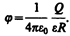 Согласно (84.5), потенциал уединенного шара радиуса R, находящегося в однородной среде с диэлектрической проницаемостью e, равен