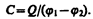 Так как поле сосредоточено внутри конденсатора, то линии напряженности начинаются на одной обкладке и кончаются на другой, поэтому свободные заряды, возникающие на разных обкладках, являются равными по модулю разноименными зарядами. Под емкостью конденсатора понимается физическая величина, равная отношению заряда Q, накопленного в конденсаторе, к разности потенциалов (j1 — j2) между его обкладками:
