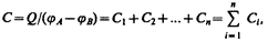 т. е. при параллельном соединении конденсаторов она равна сумме емкостей отдельных конденсаторов.
