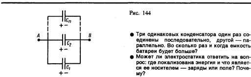Для увеличения емкости и варьирования ее возможных значений конденсаторы соединяют в батареи, при этом используется их параллельное и последовательное соединения.