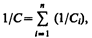 т. е. при последовательном соединении конденсаторов суммируются величины, обратные емкостям. Таким образом, при.последовательном соединении конденсаторов результирующая емкость С всегда меньше наименьшей емкости, используемой в батарее.