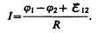 (при отсутствии сторонних сил напряжение на концах участка равно разности потенциалов (см. § 97)). Если же электрическая цепь замкнута, то выбранные точки 1 и 2 совпадают, j 1= j 2; тогда из (100.4) получаем закон Ома для замкнутой цепи: