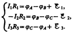 Для контуров АСВA, ACDA и CBDC, согласно второму правилу Кирхгофа, можно записать: