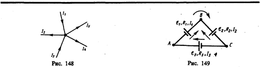 Например, для рис. 148 первое правило Кирхгофа запишется так: