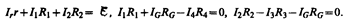 Если известны все сопротивления и э.д.с., то, решая полученные шесть уравнений, можно найти неизвестные токи. Изменяя известные сопротивления R 2, R 3 и R 4, можно добиться того, чтобы ток через гальванометр был равен нулю (IG = 0). Тогда из (101.3) найдем