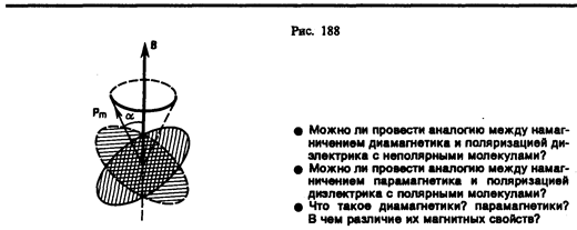Из рассмотрения явления парамагнетизма следует, что его объяснение совпадает с объяснением ориентационной (дипольной) поляризации диэлектриков с полярными молекулами (см. § 87), только электрический момент атомов в случае поляризации надо заменить магнитным моментом атомов в случае намагничения.