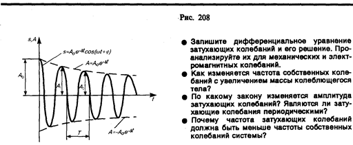 Затухание нарушает периодичность колебаний, поэтому затухающие колебания не являются периодическими и, строго говоря, к ним неприменимо понятие периода или частоты. Однако если затухание мало, то можно условно пользоваться понятием периодакак промежутка времени между двумя последующими максимумами (или минимумами) колеблющейся физической величины (рис. 208). Тогда период затухающих колебаний с учетом формулы (146.4) равен