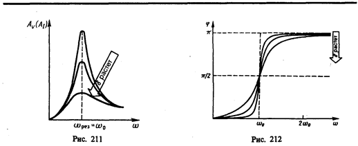 На рис. 211 представлены резонансные кривые для амплитуды скорости (тока). Амплитуда скорости (тока)