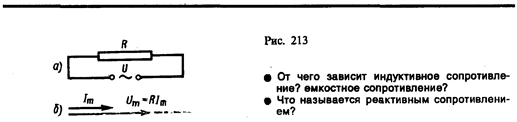 1. Переменный ток, текущий через резистор сопротивлением R (L ®0, C ®0) (рис. 213, а). При выполнении условия квазистационарности ток через резистор определяется законом Ома: