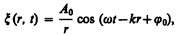 где r — расстояние от центра волны до рассматриваемой точки среды. В случае сферической волны даже в среде, не поглощающей энергию, амплитуда колебаний не остается постоянной, а убывает с расстоянием по закону 1/ r. Уравнение (154.7) справедливо лишь для r, значительно превышающих размеры источника (тогда источник колебаний можно считать точечным).