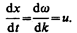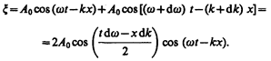 За скорость распространения этой негармонической волны (волнового пакета) принимают скорость перемещения максимума амплитуды волны, рассматривая тем самым максимум в качестве центра волнового пакета. При условии, что t d w —x d k = const, получим