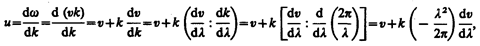 Из формулы (155.2) вытекает, что u может быть как меньше, так и больше v в зависимости от знака d v/ d l. В недиспергирующей среде d v/ d l= 0 и групповая скорость совпадает с фазовой.