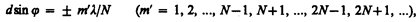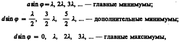 Если дифракционная решетка состоит из N щелей, то условием главных минимумов является условие (180.2), условием главных максимумов — условие (180.3), а условием дополнительных минимумов