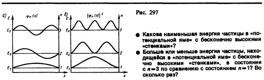 где l — ширина «ямы», а энергия отсчитывается от ее дна (рис. 296).